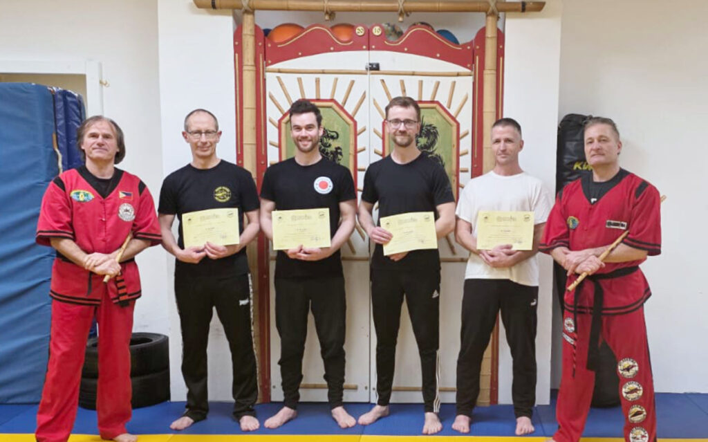 Den Höhepunkt des Lehrgangs bildete die abschließende Prüfung. Mehrere Teilnehmer stellten sich der Herausforderung und demonstrierten ihr Können in den Bereichen Technik, Anwendung und Partnerübungen. Die intensive Vorbereitung zahlte sich aus: Alle Prüflinge bestanden erfolgreich und durften stolz ihre Urkunden entgegennehmen.